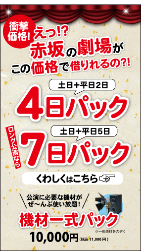 赤坂CHANCE(チャンス)シアター公式フェイスブック赤坂CHANCE(チャンス)シアター公式ツイッター24時間利用可同録OKフリーWi-Fi有り